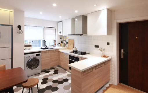 大面積使用鋼化玻璃做臺面,搭配櫥柜,視覺上也不是很容易搭配,畢竟裝修除了要考慮實用性,還是得在乎美觀度,甚至對于很多人來說美觀度會排在第一位。