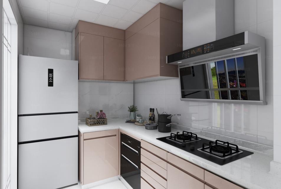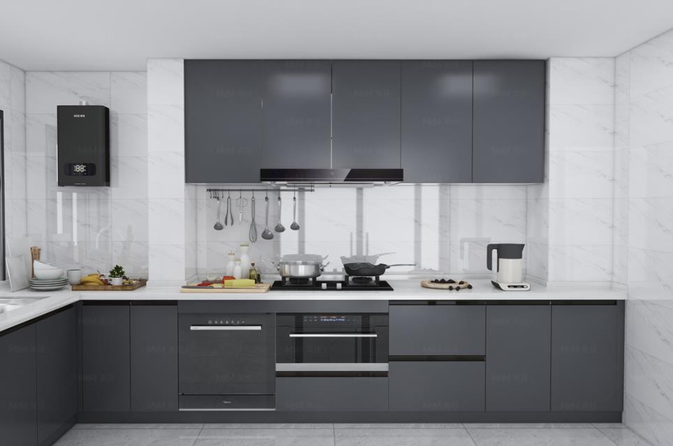 因為廚房接觸到的水漬及油煙太多了,貼防潮貼紙的好處就是能很好地保護好柜體板,這樣不僅能增加柜體的使用壽命,并且日常打理也輕松方便。特別是水槽下方的防潮設計,每個櫥柜品牌在選擇防潮柜體的設計是不一樣的。